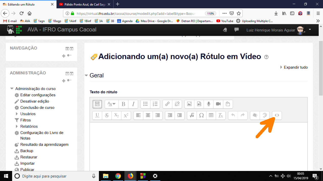 Passo 8 - Clique no ícone para inserir código HTML